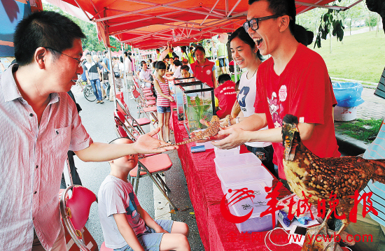 华南农业大学活动现场,参加活动的家长近距离接触平时难得一见的"小动物"