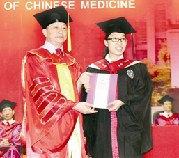早上7点起床,将近11点时,基础医学院研究生罗启盛终于从王省良校长手中接过毕业纪念册,完成了自己的硕士学位授予仪式。他形容受礼结束走下台时的感受:"感觉身后很温暖,像有了强大的依靠。"