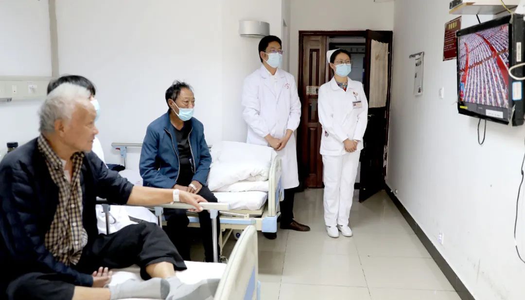 云南大理白族自治州中医医院康复科医护人员和患者在病房一起收看直播。通讯员 毛双菊摄