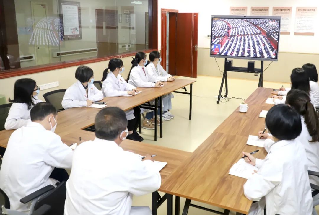 山西省长治市中医研究所附属医院组织全体党员、民主党派人士等收看直播。通讯员 索智慧摄