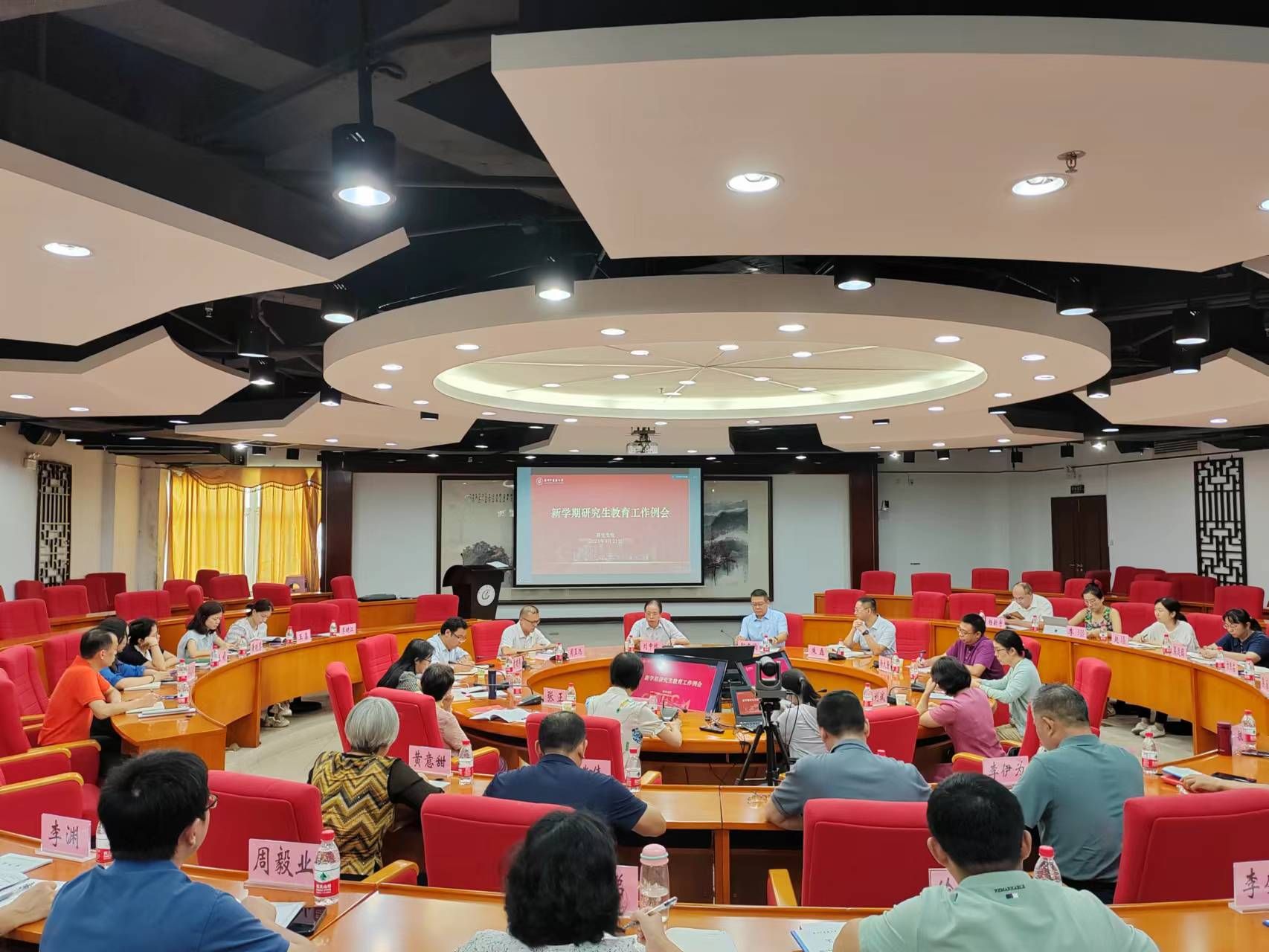 9月21日,新学期研究生教育工作例会在101会议室举行,会议采用线上线下相结合形式。财务处、国合处、研究生院负责人,校本部及部分广州市研究生培养单位的研究生思政工作主管领导、研究生教育主管领导,思政工作联络人、研究生工作秘书共40余人参加现场会议;广州地区以外的研究生培养单位领导及负责老师共50余人参加线上会议。会议由刘中秋副校长主持。
