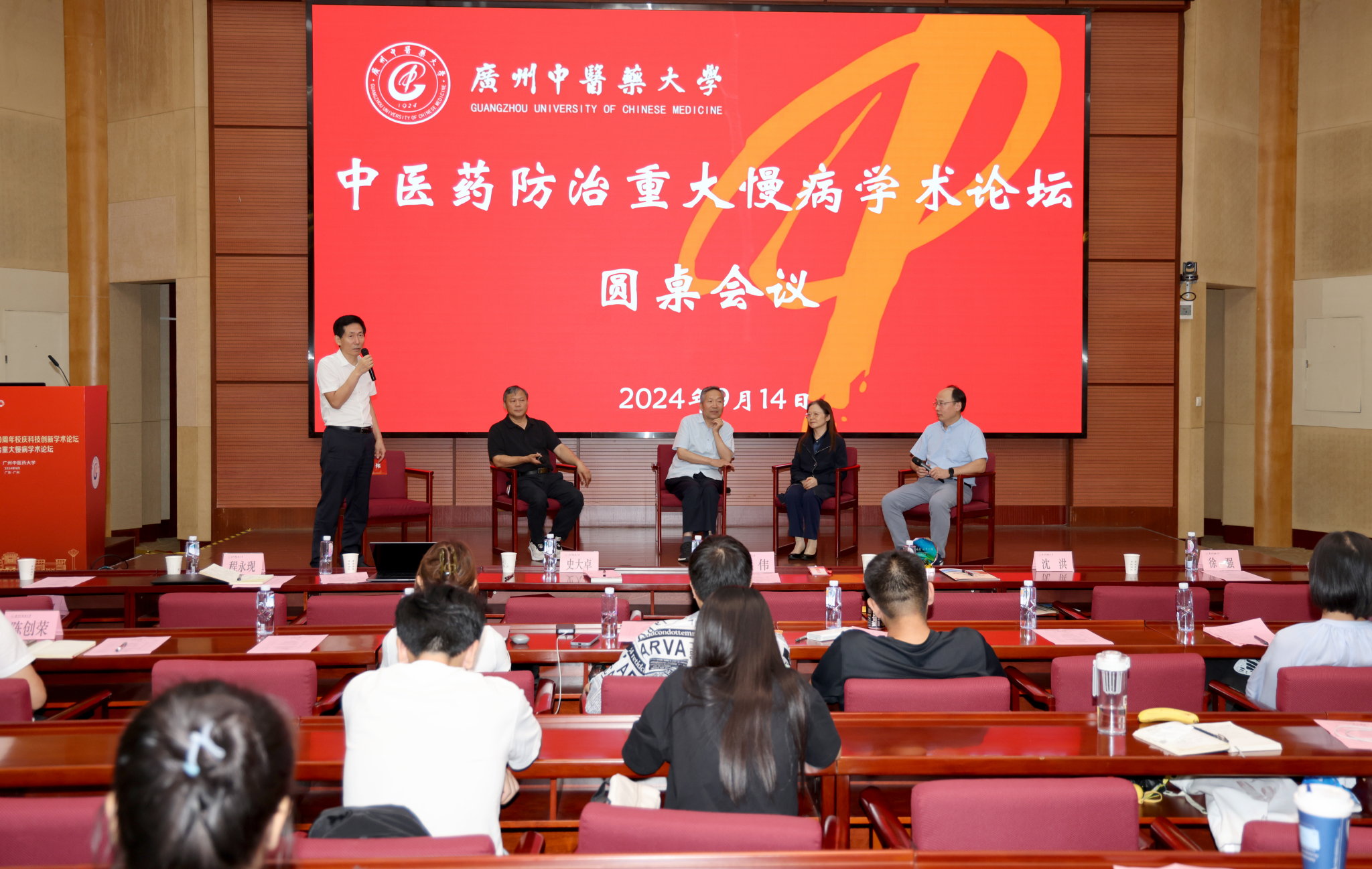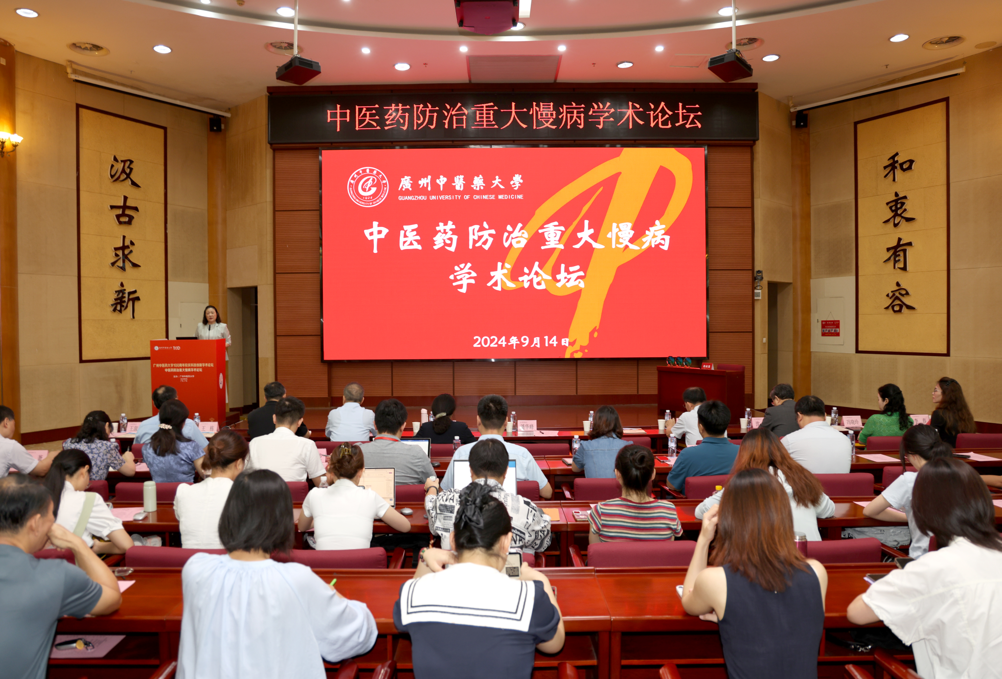 9月14日,ac米兰官网中文网站100周年校庆系列学术活动——中医药防治重大慢病学术论坛在大学城校区举行。ac米兰官网中文网站校长王伟,副校长潘华峰、刘中秋、王宏斌、郭鸿,以及学校相关职能部门负责人出席会议。王宏斌主持开幕式,潘华峰致欢迎辞。