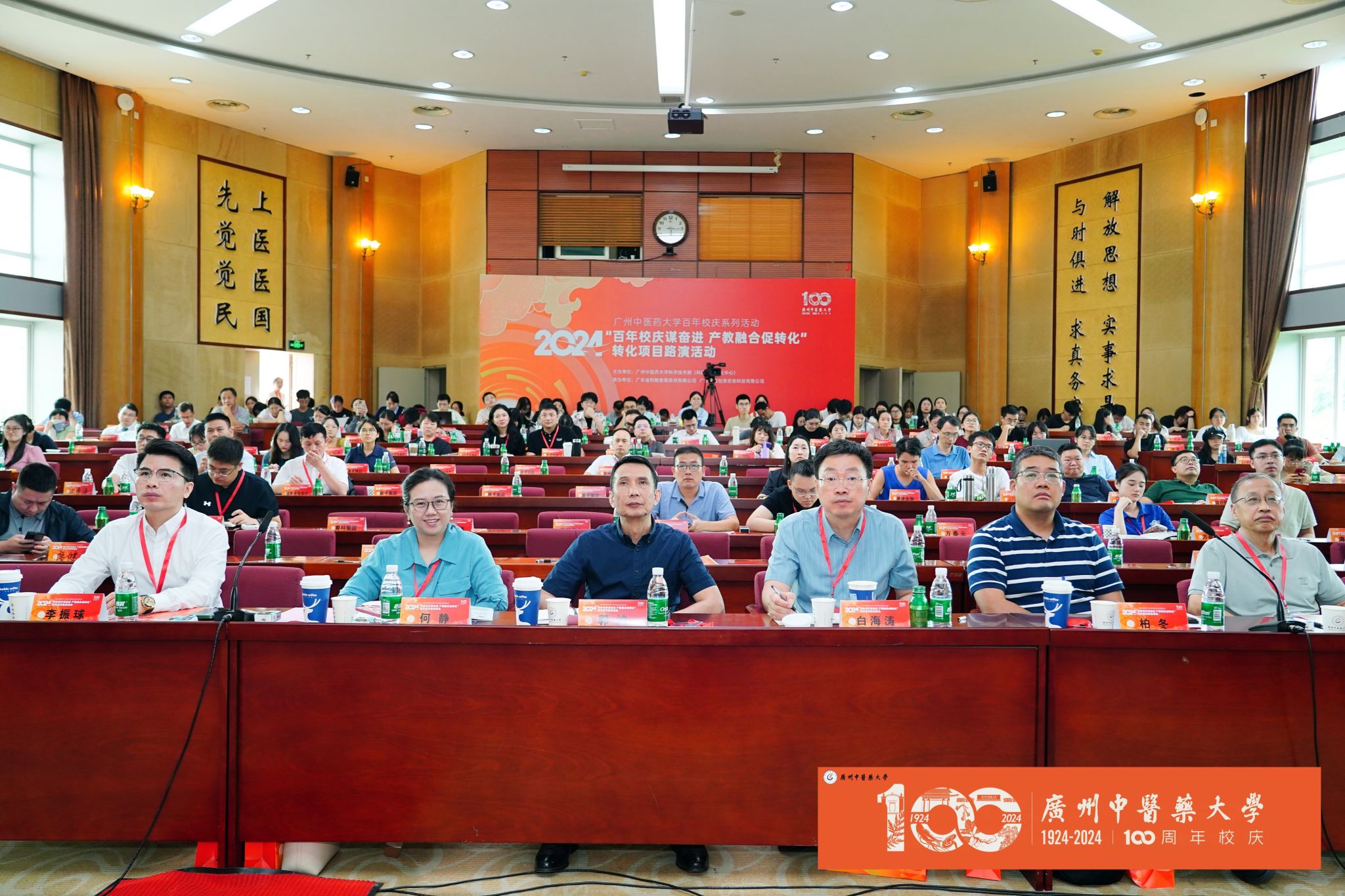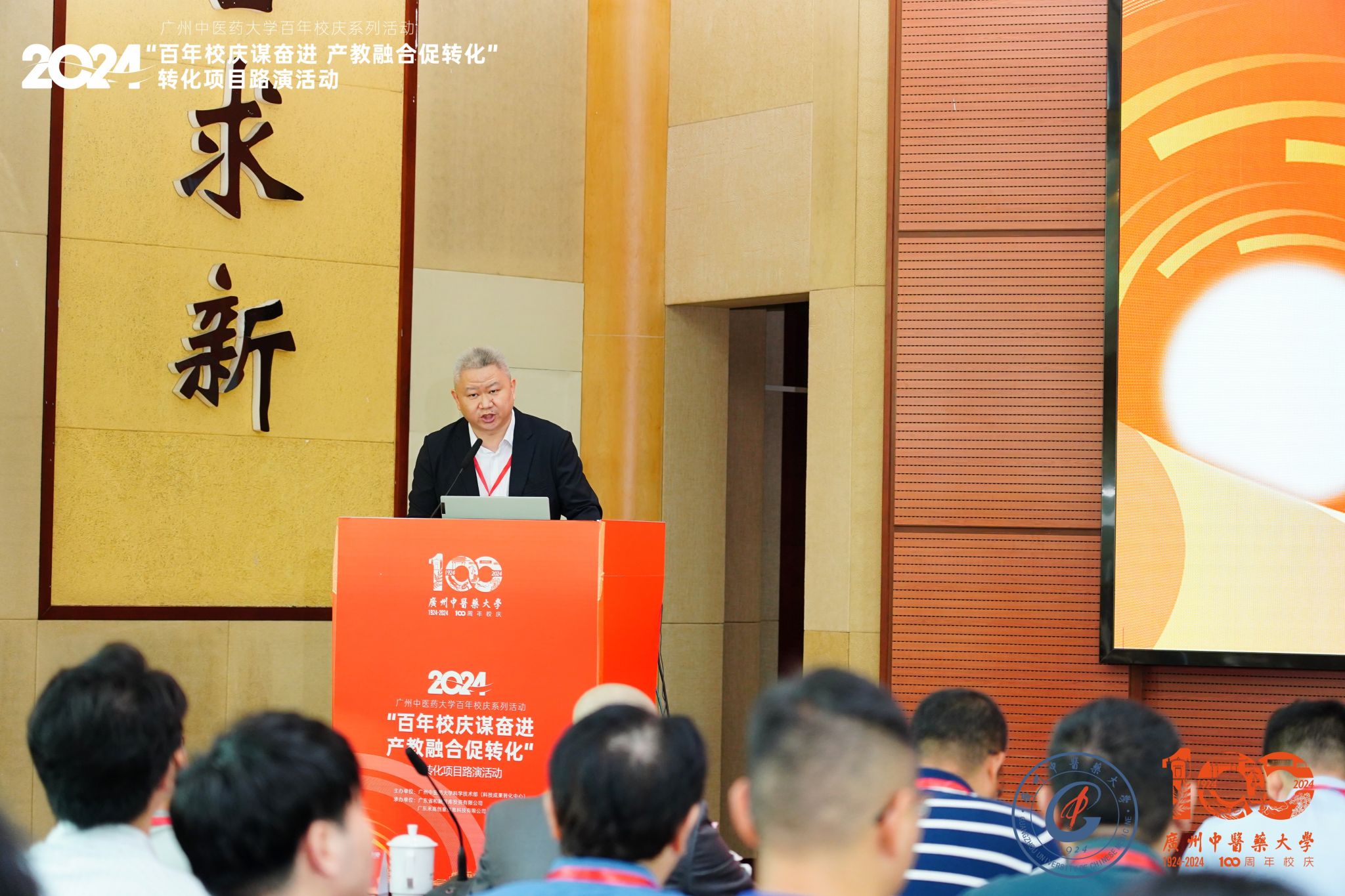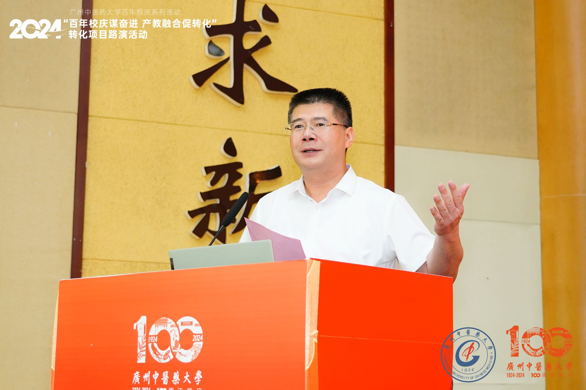 9月8日,ac米兰官网中文网站“百年校庆谋奋进·产教融合促转化”科技成果展示和项目路演在大学城校区举行。学校党委书记陈文锋,副校长潘华峰、郭鸿,中国中医药科技发展中心成果推广处负责人王泽浩,番禺区政协副主席师雁,大学城管委会副主任任树兵出席活动,番禺区科工商信局、卫生健康局,番禺区投资促进中心,广州大学城科技成果转化中心、创新创业促进中心相关负责人和校内相关职能部门及学院负责人参加。活动由副校长王宏斌主持。