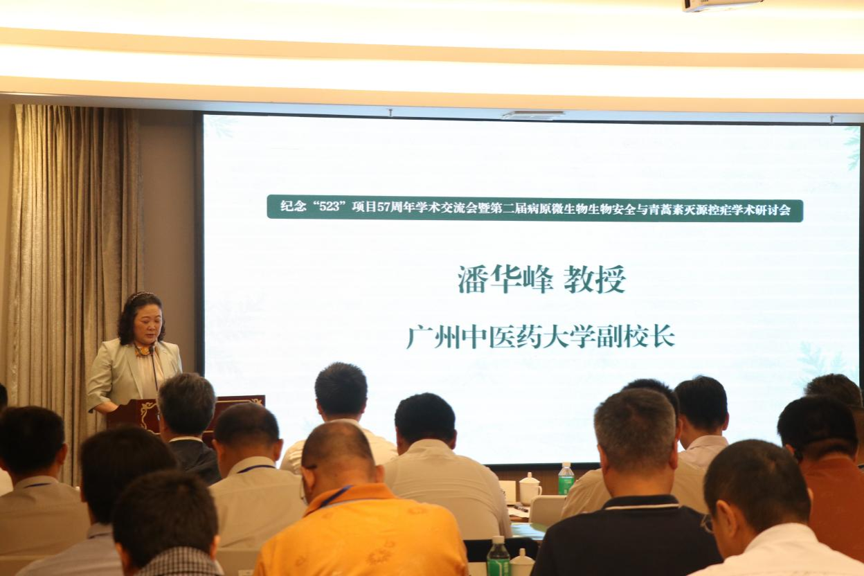 潘华峰对各位领导和专家学者的莅临表示热烈欢迎,她表示举办纪念“523”项目57周年学术交流会,不仅是缅怀前辈们的卓越贡献,更要结合当今病原微生物生物安全的新挑战,探讨青蒿素在新时代背景下的灭源控疟策略。希望通过本次研讨会,能够激发新的科研灵感,推动中医药学术创新。